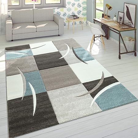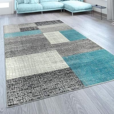 Paco Home Tappeto Di Design Motivo A Quadri Turchese Grigio Dimensione 80x150 Cm Amazon It Casa E Cucina