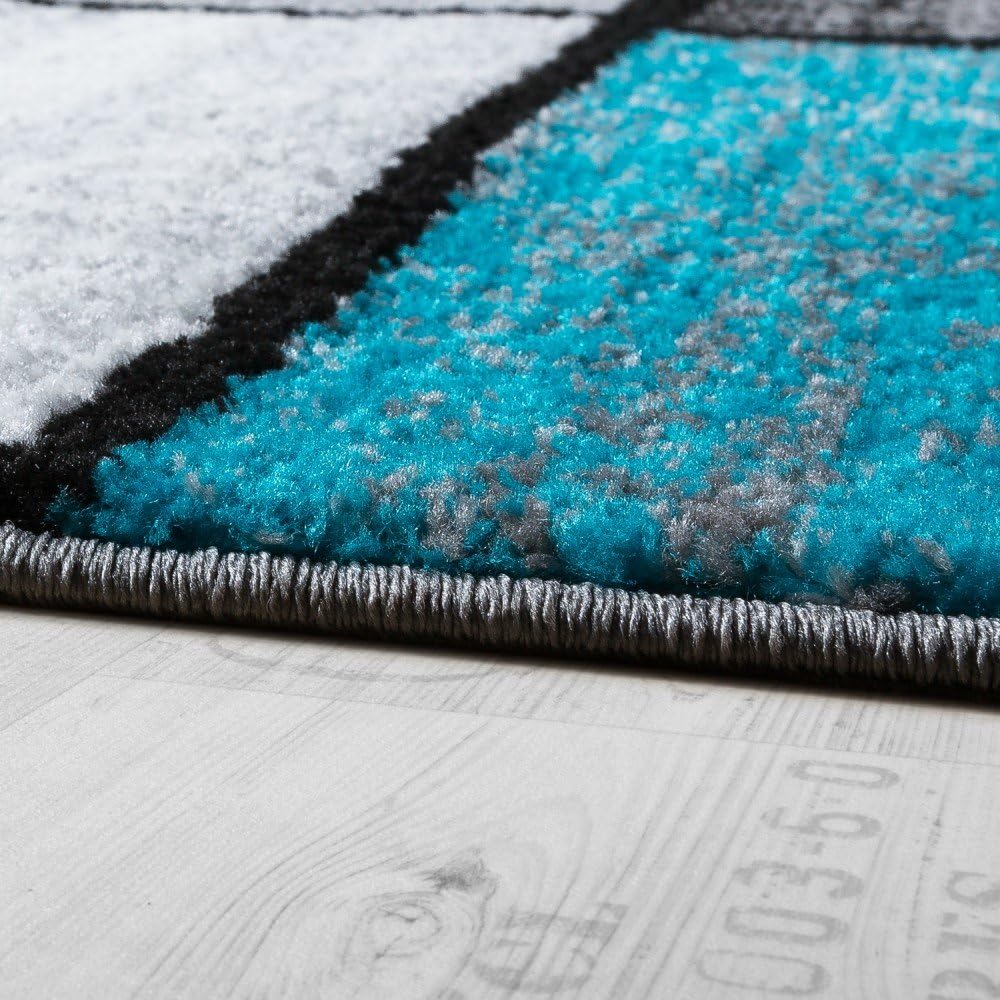 Paco Home Tappeto Moderno A Quadri Bianco Turchese Grigio Nero