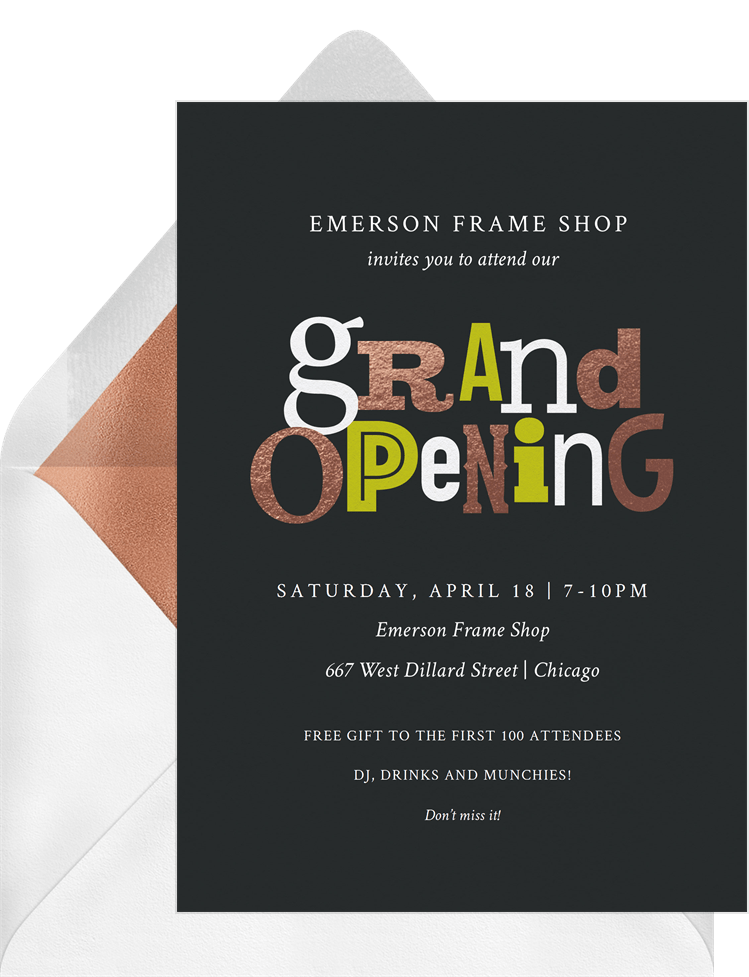 Golden Beads Invitations In Black Greenvelope Com Grand Opening Invitations Shop Opening Invitation Card School Invitation Card