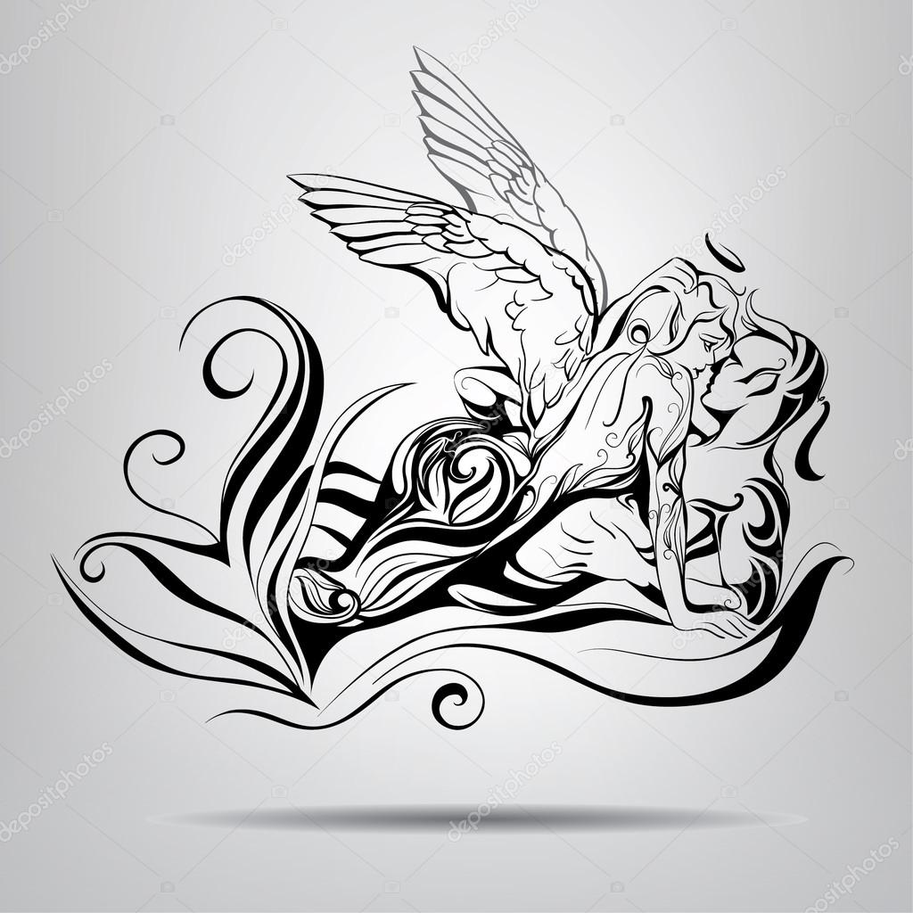 Stencil Angel Chest Tattoo Monochrome Fictional Character Bird Png Pngwing
