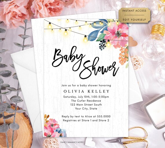 Editable Garden Party Baby Shower Invitation Template Watercolor Flowers Printable Pdf Or Jpeg Print Or Text Digital Invitation 6275 By Fancy Shmancy Notes Catch My Party