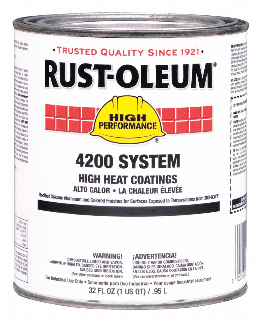 RUST-OLEUM Pintura de Alta Temperatura, Color Negro, Acabado Metálica, Cobertura 60 a 137 pies cuad., Tamaño: 1 cuarto - Epoxi, Uretano y Recubrimientos Especiales - 23N398 | 261968 - Grainger México