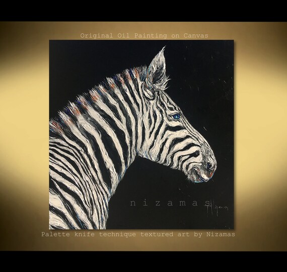 Profil de zèbre noir et blanc de peinture dhuile sur le fond | Etsy