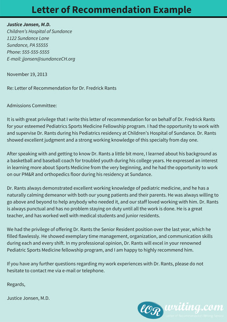 Perfect Sample Letter Of Recommendation For Pediatric Residency