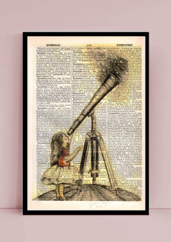 Girl looking at the stars through a telescope wall decoration | Etsy