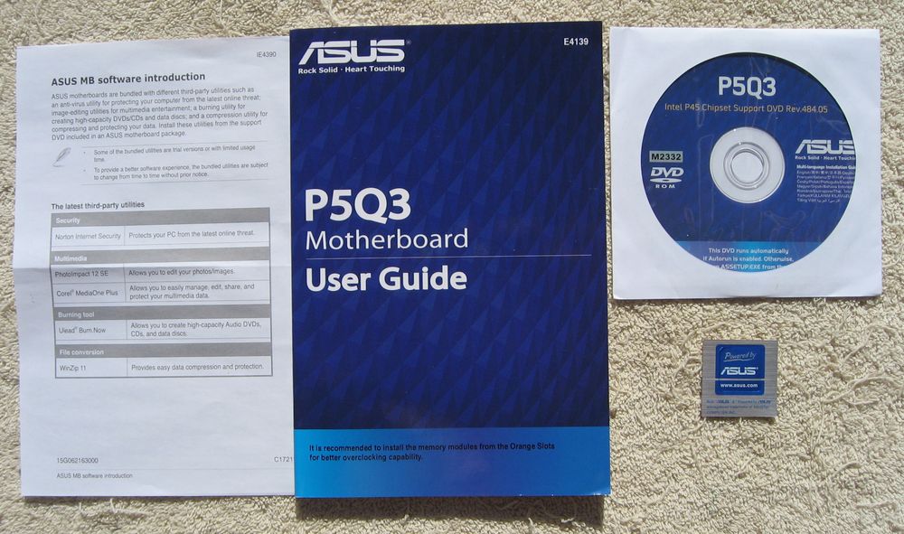 Original Manual Driver Disk For Asus P5q3 Lga 775 P45 Motherboard Usa Mint Ebay