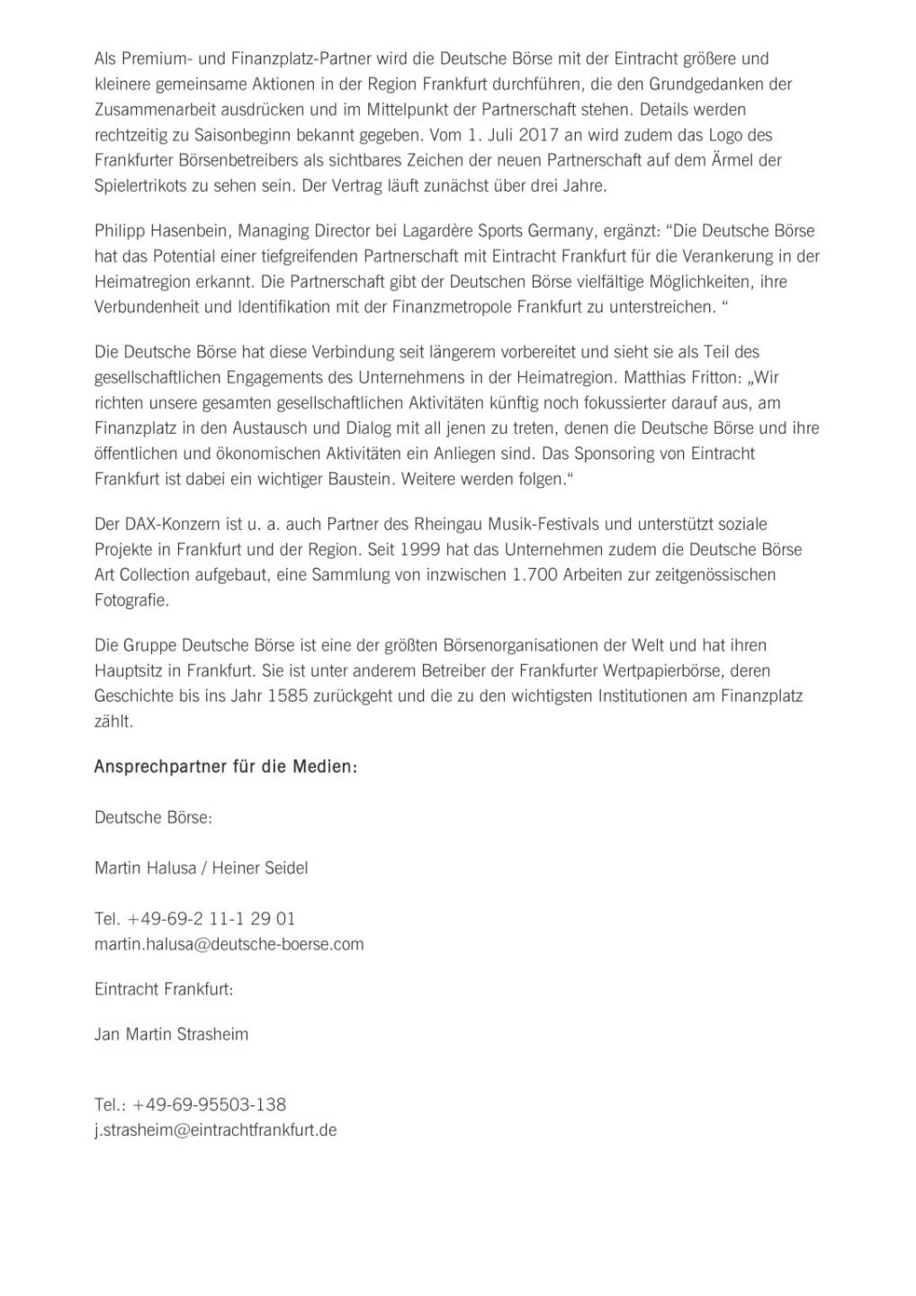 Deutsche Börse und Eintracht Frankfurt gehen Partnerschaft ein, Seite 2/3, komplettes Dokument unter http://boerse-social.com/static/uploads/file_2262_deutsche_borse_und_eintracht_frankfurt_gehen_partnerschaft_ein.pdf Bild 64027 // BSN Originals 23.05.2017